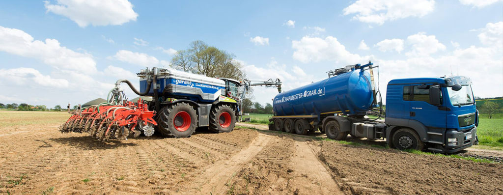 Angefangen hat jedoch alles ganz anders und, wie bei vielen Unternehmen, eher zufällig. „Mein Vater ist Landwirt und so lag es natürlich nahe, dass auch ich diesen Weg einschlug und zunächst meine Lehre und später auch die Meisterprüfung als Landwirt absolvierte.“, erzählt der heute 38-jährige Geschäftsführer Tobias Schafmeister von den ersten Stunden der Schafmeister Agrarservice GmbH & Co. KG. Der Hauptschwerpunkt des heute größten Lohnunternehmens der Region, das Ausbringen von Gülle und Gärsubstrat, entwickelte sich aus einem Bedarf des Nachbarn heraus. „Tobias,“ sagte mein Nachbar: „kannst du nicht Mal das Presswasser vom Kompost wegschaffen?“, erinnert sich Tobias Schafmeister. So nahm alles seinen Lauf und aus den anfänglichen Nachbarschaftsdiensten wurde im Jahre 2001 zunehmend spätestens mit Auftauchen der Biogasanlagen, ein immer größeres Geschäft – die Geburtsstunde des Schafmeister Agrarservice. Als Meilensteine der Unternehmensgeschichte sieht Schafmeister die Einstellung der ersten Mitarbeiter. Plötzlich saß er nicht mehr alleine auf dem Trecker, sondern musste sich zunehmend der Koordination von Mitarbeitern und Aufträgen widmen. 2007 kam dann der Durchbruch. Nach der ersten Biogasanlage folgte die zweite und immer mehr Anlagen kamen als Kunde hinzu. So wuchs auch das Dienstleistungsportfolio und der erste Häckselwagen wurde angeschafft, um zukünftig auch Dienstleistungen in der Maisernte anzubieten. Groß geworden durch organische Düngung verzeichnete der Fahrzeugbestand zu diesem Zeitpunkt bereits eine enorme Größe. Neben dem Ausbringen von Gülle und Gärsubstrat bietet das Unternehmen heute diverse Arbeiten von der Aussaat, über die Mais- und Getreideernte bis zum Streuen von Feststoffen an. Über 30 Mitarbeiter sind derzeitig im Unternehmen beschäftigt, die im Raum Ostwestfalen-Lippe und über die Grenzen hinaus tätig sind.