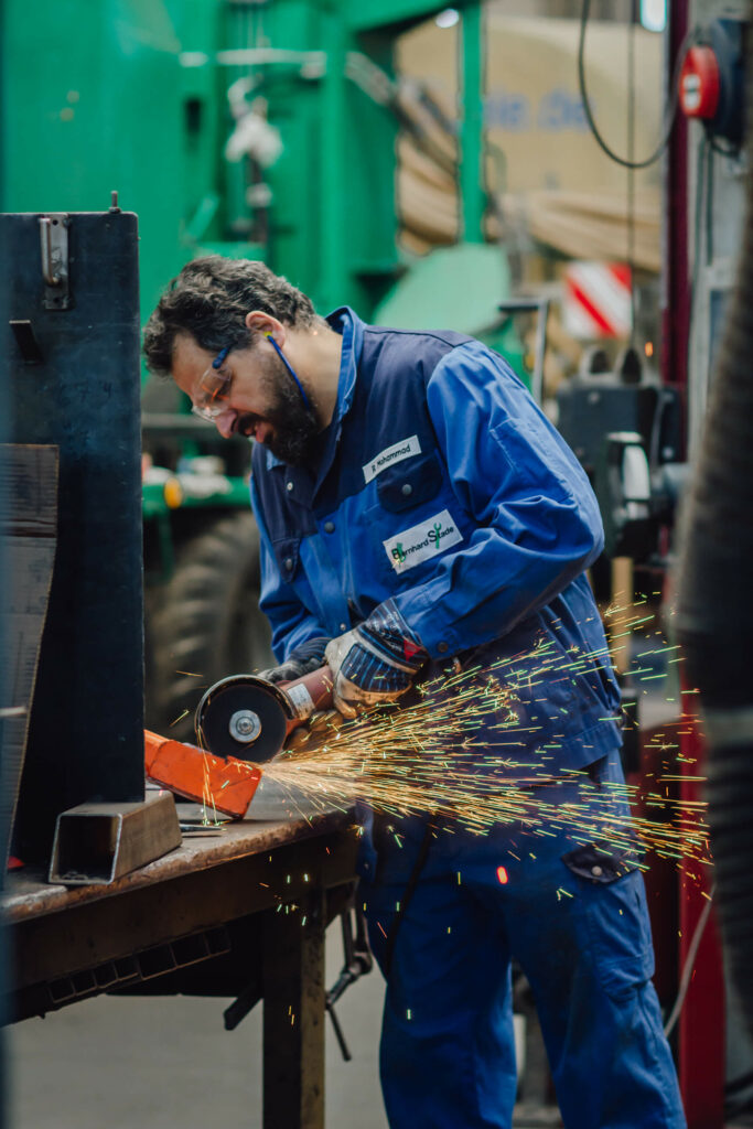 Hier treffen wir Julia Stade, die Juniorchefin des Unternehmens, die uns an diesem Tag den vielseitigen Betrieb in all seinen Facetten vorstellen wird. Denn das Unternehmen ist kein klassisches Lohnunternehmen. Die Kombination aus landwirtschaftlichem Lohnbetrieb, Maschinenbauunternehmen, Landtechnik- und Reparatur Service und dem Handel und der Reparatur von Forst- und Gartengeräten machen das Familienunternehmen zu einem vielseitigen Betrieb mit vielerlei Handlungsfeldern, in dem eine Vielzahl an Menschen, Berufen und damit verbundenen administrativen Aufgaben zusammenkommt.
