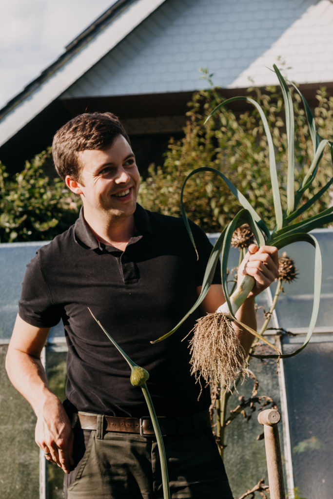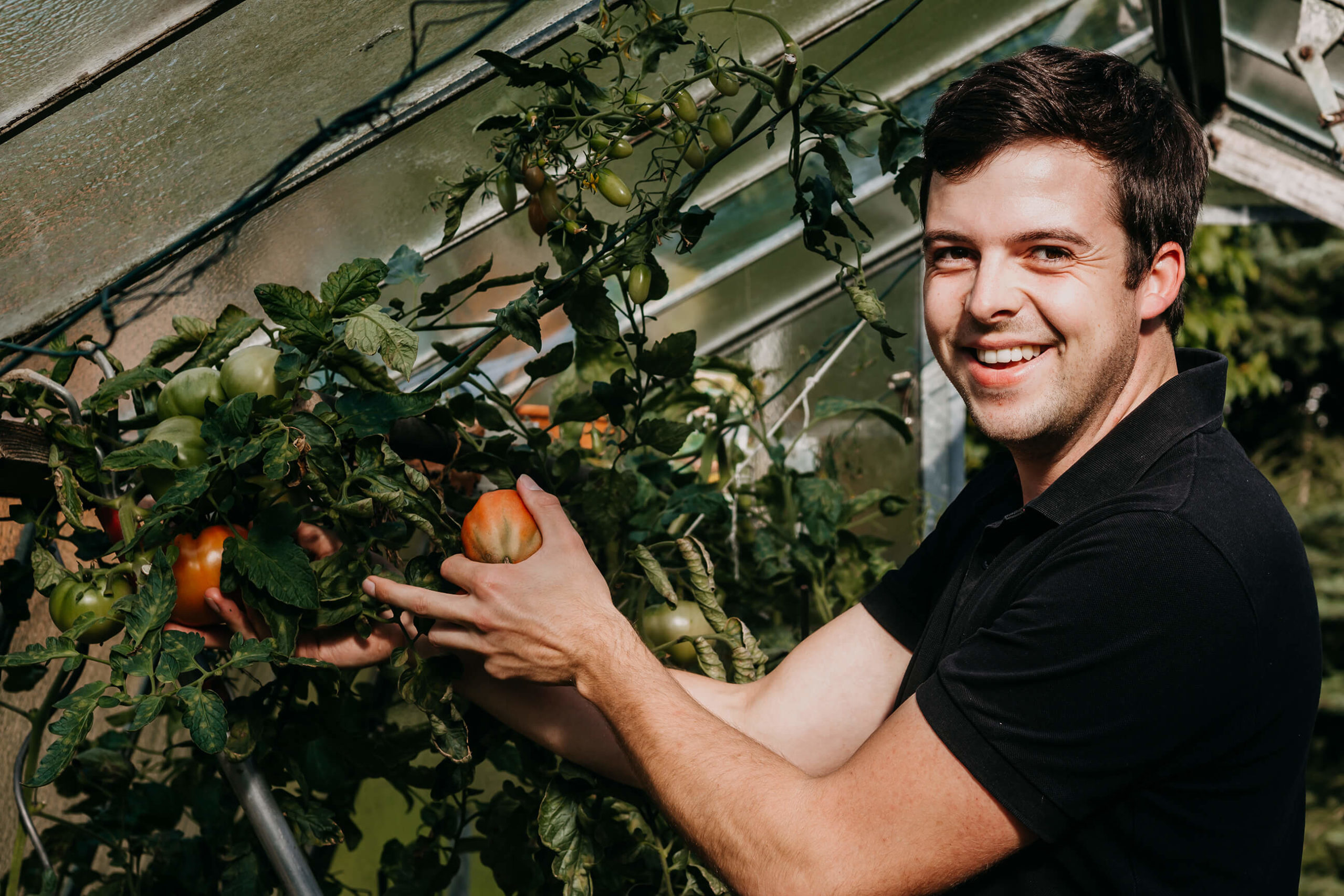 Heute ist er neben der Arbeit bei AGRARMONITOR nicht mehr regelmäßig auf einem Trecker zu finden, sondern bewirtschaftet den 400qm großen Nutzgarten seiner Großeltern – natürlich unter den strengen Augen seines Großvaters. Max baut hier Gurken, Tomaten, Zwiebeln, Knoblauch, Kartoffeln, Möhren, rote Beete, Paprika und Chilis an, aber auch exotischere Gewächse wie Süßkartoffeln oder Melonen. Das alles ist nur für den Eigenbedarf gedacht, jedoch profitiert auch das Team von AGRARMONITOR regelmäßig von den feldfrischen Produkten. Zum Ende des Sommers produziert Max gemeinsam mit seiner Frau und der gesamten Familie noch Apfelsaft, selbstverständlich aus eigenen Früchten.