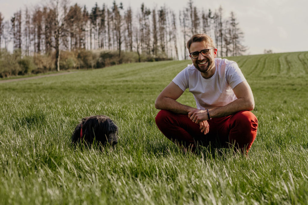 Den Ausgleich zu seinem Bürojob findet Marcel draußen in der Natur. Zwar nicht auf dem Traktor, aber zumindest im Kalletal. Denn inzwischen befindet sich auch der Lebensmittelpunkt des gebürtigen Paderborners im Lipperland. Keine 200 Meter Luftlinie vom Büro entfernt wohnt er mit seiner Familie mitten im Grünen. Der morgendliche Spaziergang mit dem Hund kann also mit dem Weg zur Arbeit verknüpft werden, denn nicht nur Marcel ist seit 10 Jahren ein fester Bestandteil von AGRARMONITOR sondern auch Hund Beetle gehört mit zum Team.