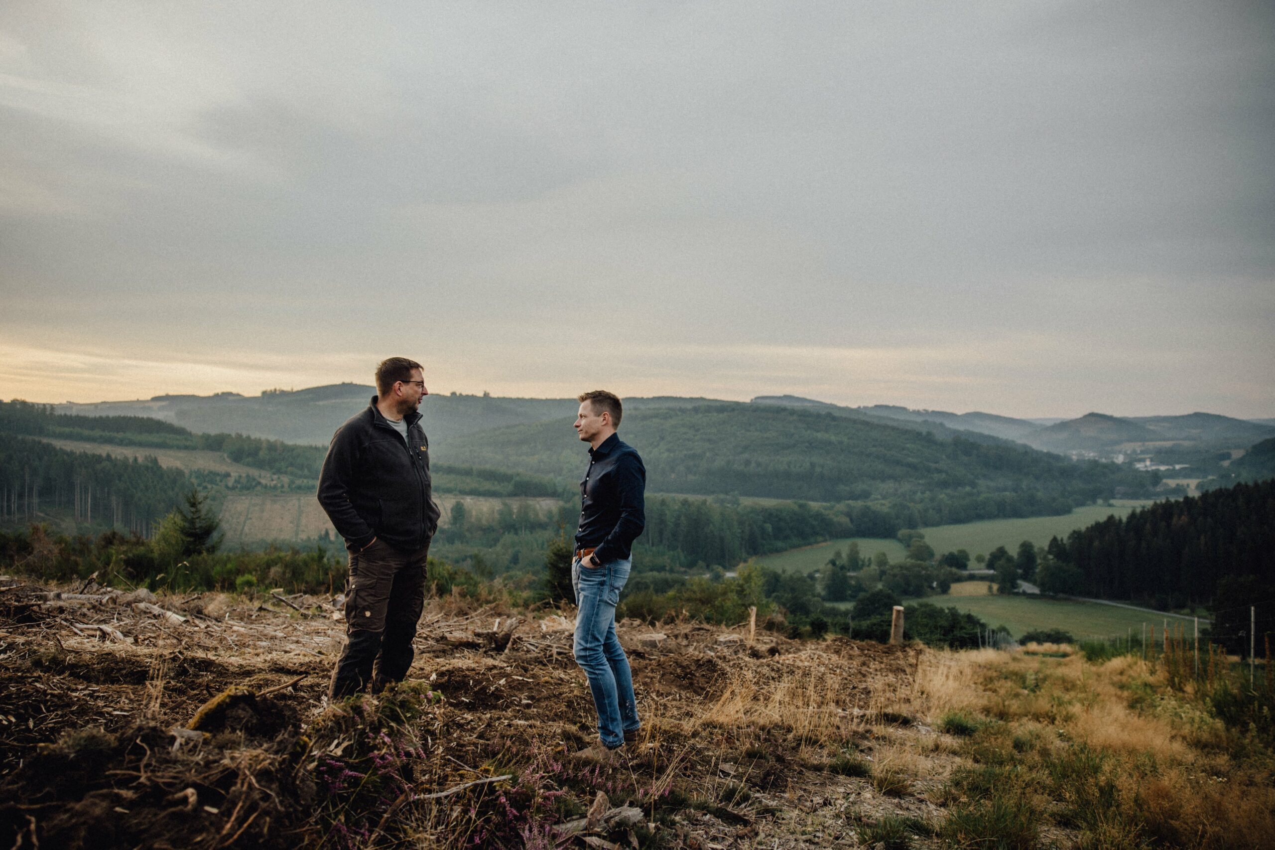 Es ist 6.00 Uhr in der Früh – die aufgehende Sonne taucht das Sauerland in sanfte Farben. Carsten Schulte fährt den schmalen, kurvigen Weg zum heutigen Einsatzort entlang. Auf dem LKW mit Tieflader transportiert er eine seiner Forstraupen. Das Lohnunternehmen Schulte, das bundesweit im Einsatz ist, hat heute ein Heimspiel. In wenigen Minuten ist die Raupe abgeladen und macht sich an die Bearbeitung der Fläche. Aus der ruhigen Morgenstimmung wird ein beeindruckender Maschineneinsatz. 21 Tonnen Kampfgewicht setzen sich in Bewegung.