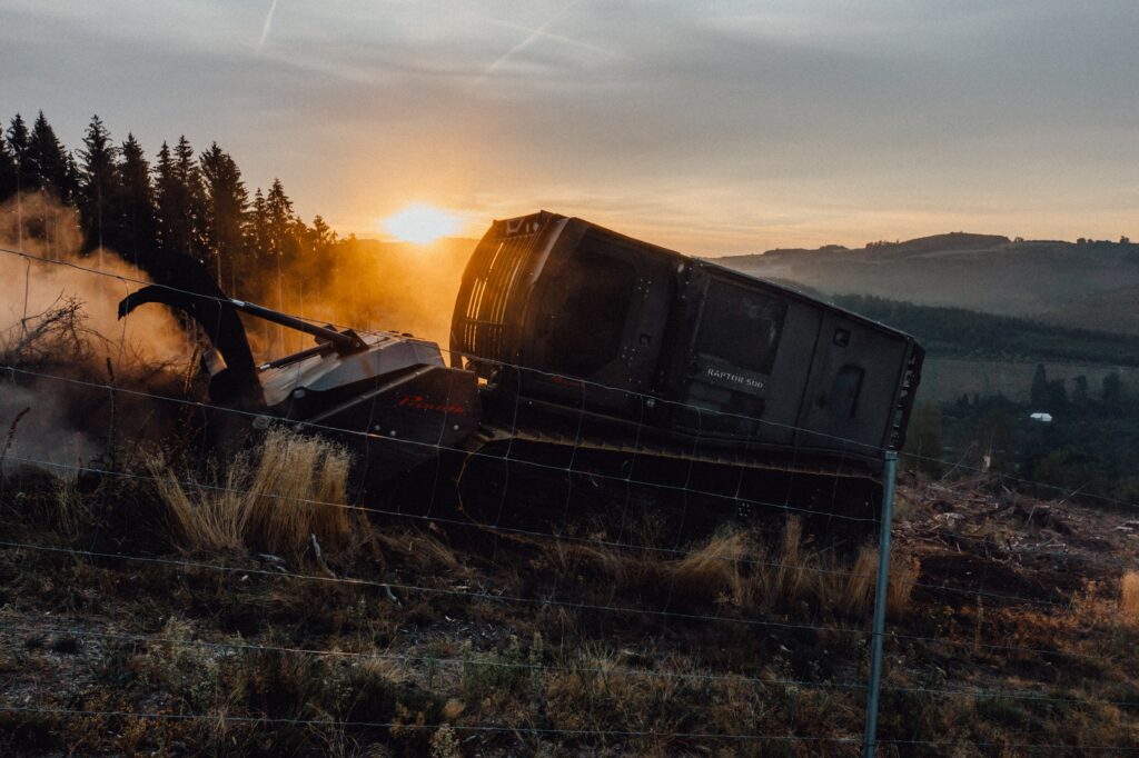 „Der Fokus liegt bei uns auf der Forstwirtschaft. Wir mulchen und fräsen Forstflächen zur Pflanzflächenvorbereitung, mit Raupenmulchern und Traktoren. Mit Raupen kann auch in schwierigen Regionen gearbeitet werden. Mit de Schleppern gab es immer mal Probleme, weil sie einfach nicht überall hinkommen, je nach Witterung.“, erläutert Carsten Schulte. Für die schonende Aufarbeitung mit unterschiedlichen Vegetationsbeständen und Bodenverhältnissen hat das Lohnunternehmen Schulte immer die perfekte Lösung parat. Verschiedene Raupen mit 275 bis 640 PS können auf den Bestand angepasst werden und bodenschonend arbeiten. „Die Raupe ist für genau diesen Einsatz gebaut und für nichts anderes.“, unterstreicht Schulte.