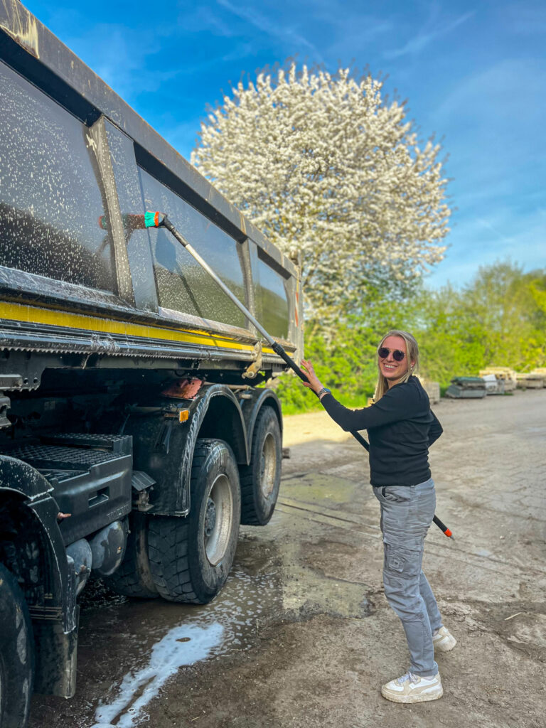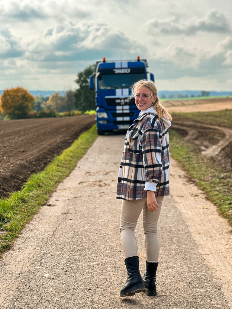 Mein Name ist Pia Treu, ich bin 27 Jahre alt, frisch verheiratet und arbeite in unserem familiengeführten Lohnunternehmen in Neu-Ulm. Ich bin gelernte Bürokauffrau und übernehme bei uns die Rechnungsstellung sowie Disposition. Vereinfacht gesagt bin ich die rechte Hand meines Vaters, der das Unternehmen zusammen mit meiner Mutter leitet. Ich teile mich aber auch gerne selbst “draußen” mit ein und bin sowohl mit Trecker als auch LKW unterwegs und kenn somit “beide Seiten”.